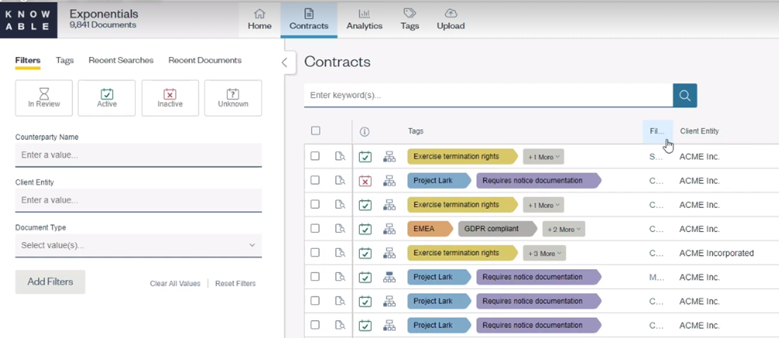 - The KI data export now includes a clickable URL link to open the document in KI: When you export data from Knowable Insights on either the Contracts Grid View or the Family View, the excel export will contain a Document Link column with the URL for each document in your export. Clicking on any URL in the Document Link column will take you to the Document View for that document.
