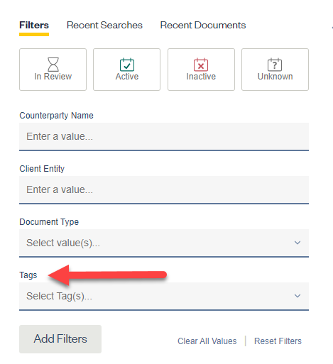 - The Tags Filters work both on the Contracts Grid and Analytics page.