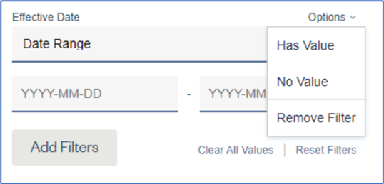 - In addition, if you want to remove a field from the Filter Panel, you can hover over the ‘Options’ dropdown and select the ‘Remove Filter’ option.