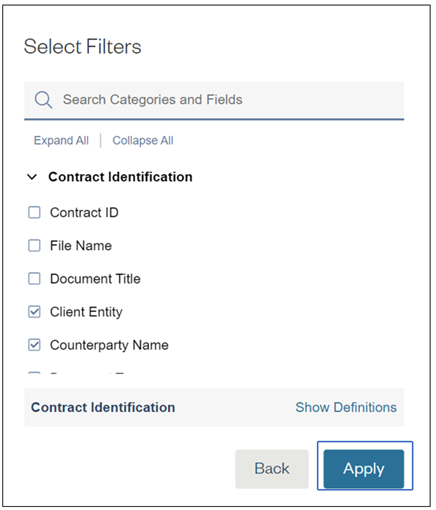 - Search and select the filter(s) to be applied and click on the ‘Apply’ button